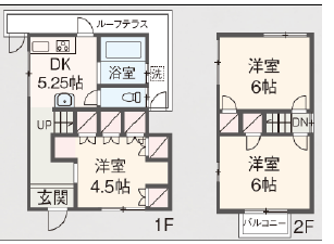 | 間取内容 | DK5.2畳 1階 1室 洋室4.5畳 1階 1室 洋室6畳 2階 2室 |